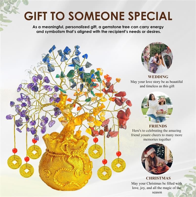 - 🌳 HANDCRAFTED TREE OF LIFE – This symbolic chakra tree crystal is formed into a wire tree of life bonsai, representing growth, grounding, and spiritual awareness.