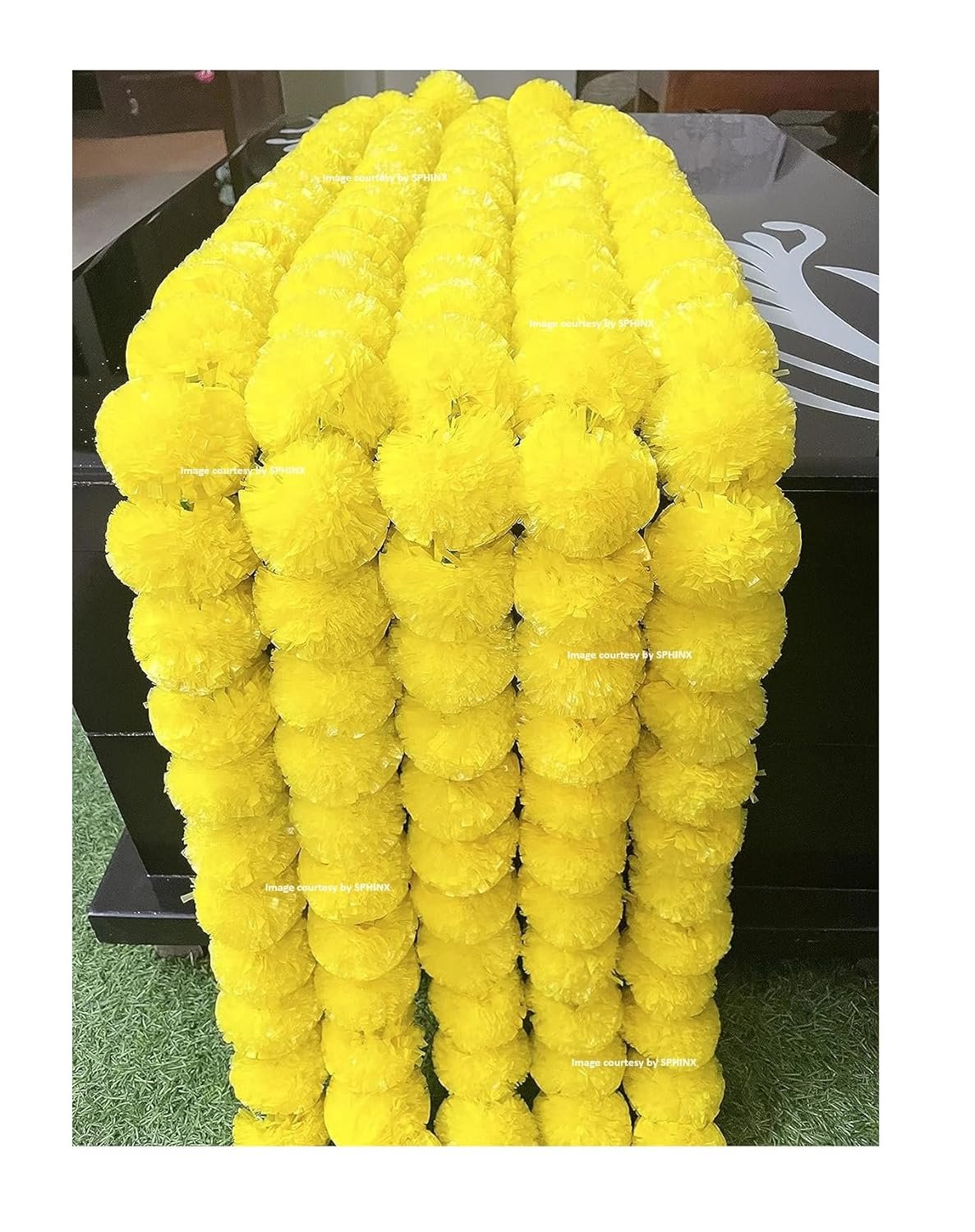 SPHINX Artificial Marigold Fluffy Flowers Garlands for Festive Pooja Wedding Housewarming Diwali Decorations Festival Events Home Table Bedroom Pooja Room (Yellow,Approx. 4.5 to 4.9 ft- 5 Pieces)